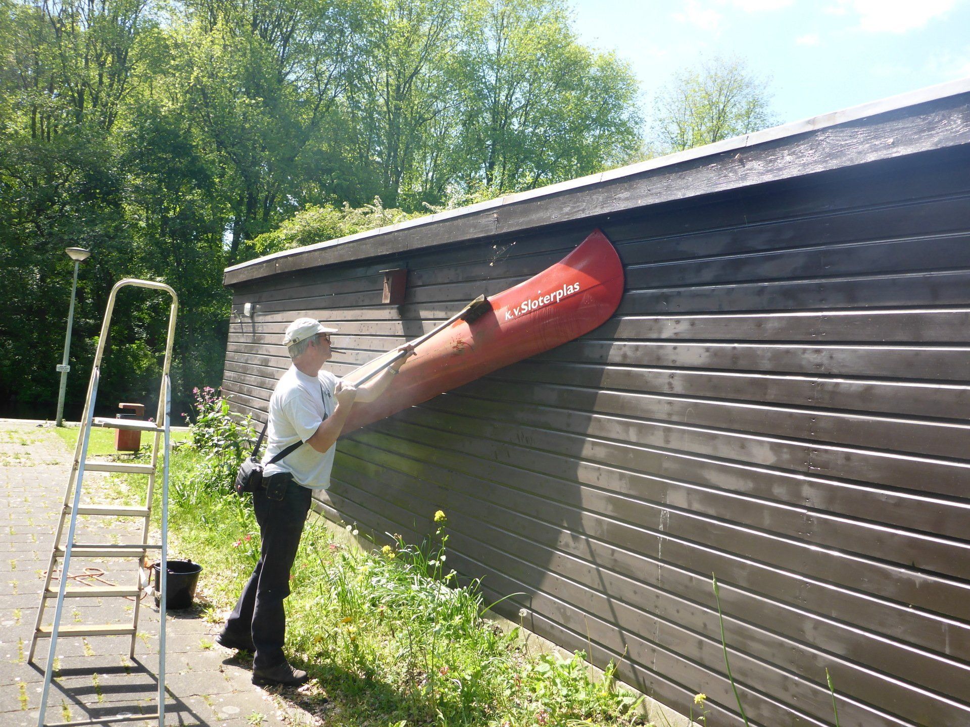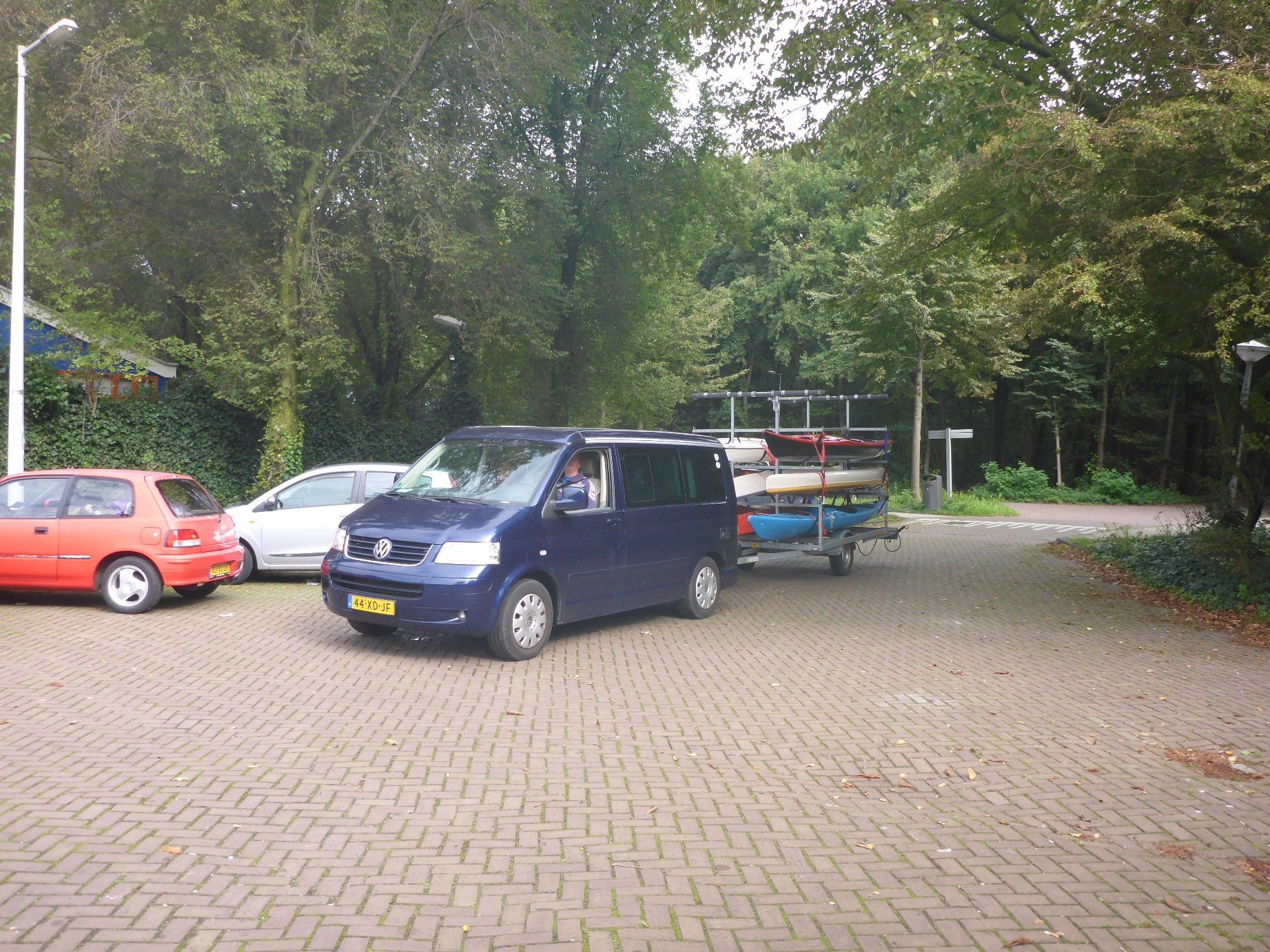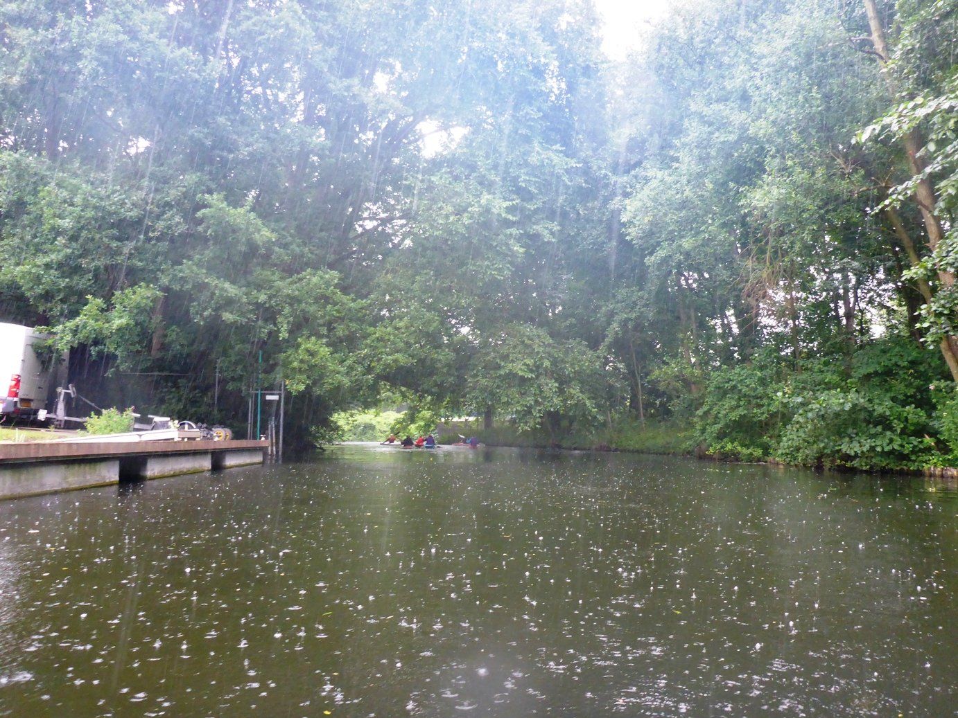 On a rainy Sunday morning we drop in on the Christoffel Plantijngracht and wander around the grounds. New members look for boats, paddles and get spray sails to borrow. Veterans grab their regular belongings from the warehouse and prepare everything for departure. Thirteen boats are eventually lifted onto the trailer and roof of Martin's car. We can hit the road!
