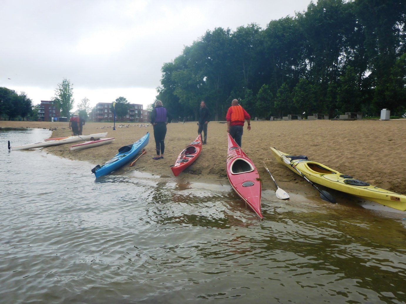A short extra lap, because it is so beautiful, and then we are back at our lunch spot. After portaging twice, we leave the part through Geuzenveld and sail the same, more direct, route back to the Sloterplas. It has now become a bit busier there; Amsterdam is looking for the afternoon sun! The new students have just returned safely back on shore. We wipe the boats clean and put them back in the shed. Until the next sunny trip!