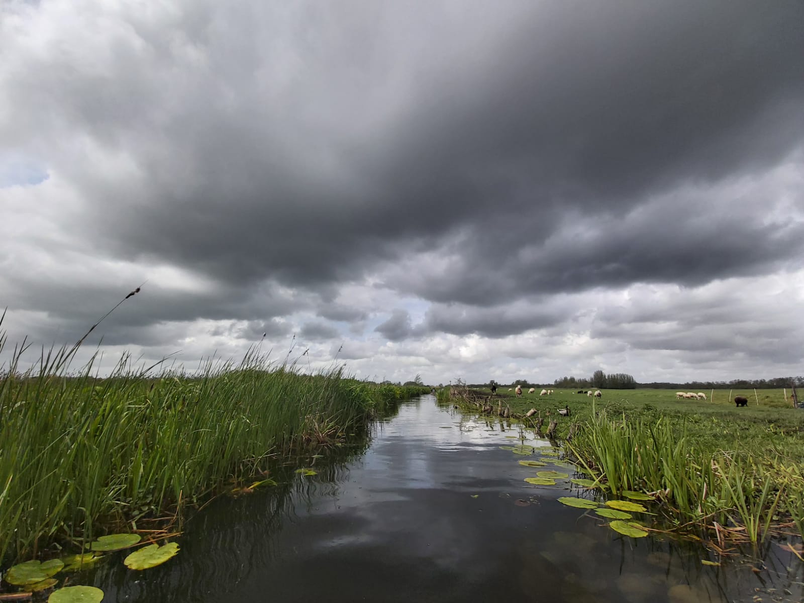 Het onweer neemt, wanneer we aankomen bij werkschuur de Kievit, met een laatste knal afscheid. Hopen we. Want we willen het water op en dat is makkelijker, leuker en veiliger zonder donder en bliksem. De weer-apps geven gelukkig aan dat het beter moet worden. Tegen de tijd dat alles is afgeladen, klaargelegd en aangetrokken lijkt dat te kloppen, de wind en regen nemen af.
