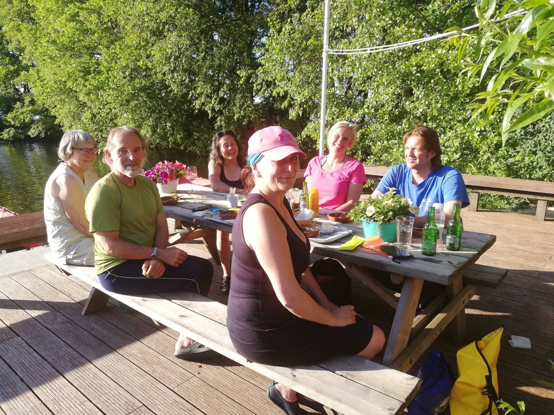 Het was ongeveer 17:30 of later toen we op de vereniging arriveerden. De kano's werden snel weer opgeborgen. Uiteindelijk streek een achtergebleven groepje van 6 leden nog neer bij Steiger 4. Tapas!!