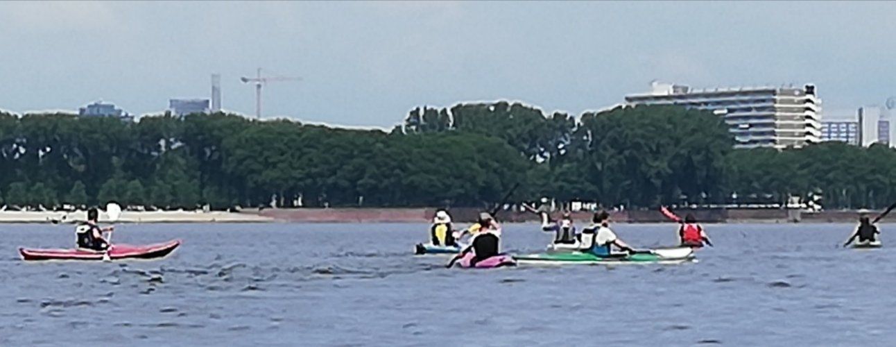 Op een zonnige zondagochtend, 30 mei 2021, varen we uit over de Sloterplas. Zestien kajakkers, waaronder flink wat nieuwe leden. Een monsterscore die de dertien deelnemers van vorige tocht overtreft.