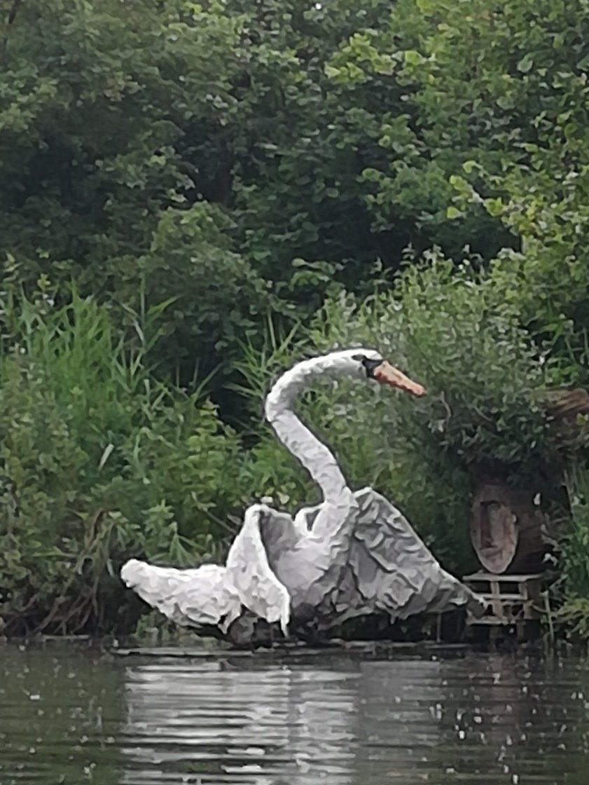 Aan onze linkerhand een spookschip, het is de drijvende tuin De Oceaan.
