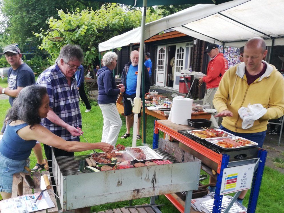 De avond BBQ werd een gezellig samen eten en iedereen kroop daarna snel rozig in de slaapzak door enkele regendruppels gemaand.